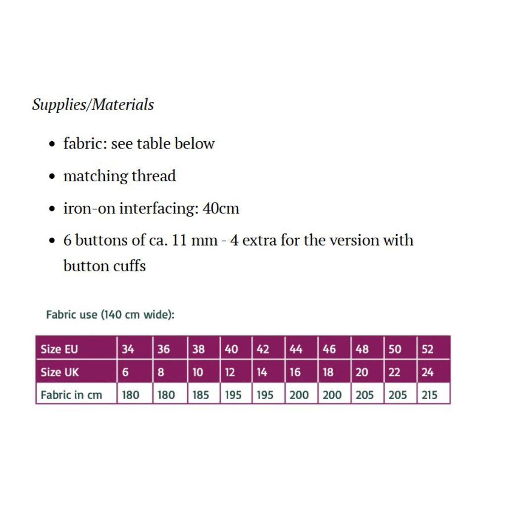 Recommended Fabrics: Light to medium-weight wovens with soft drape, such as rayon challis/crepe, cotton lawn, light weight linen.