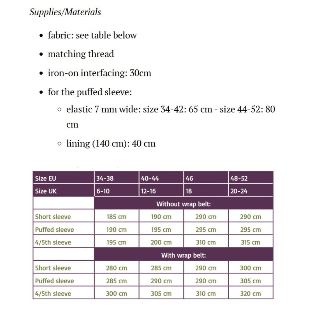 Recommended Fabrics: Light to medium-weight wovens with soft drape, such as rayon challis/crepe, cotton lawn, light weight linen.
