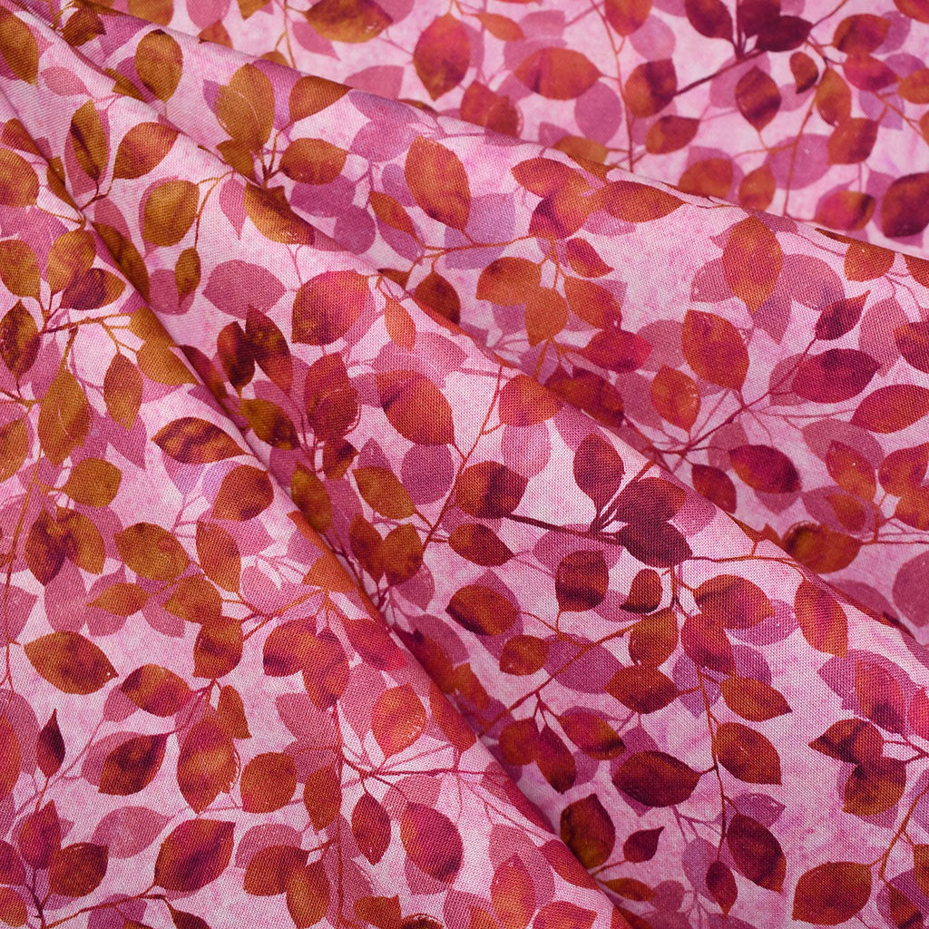 Autumn Potpourri Tonal Leaves Digital Print Cotton Berry