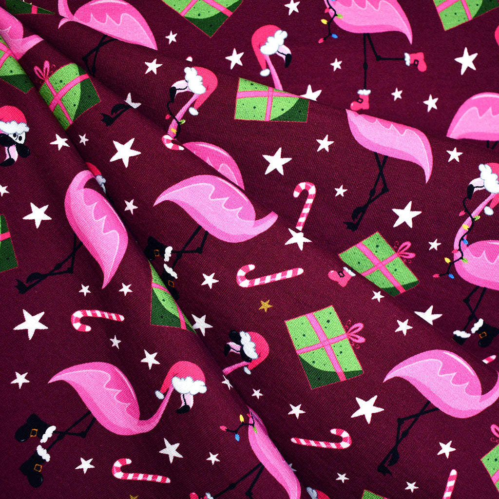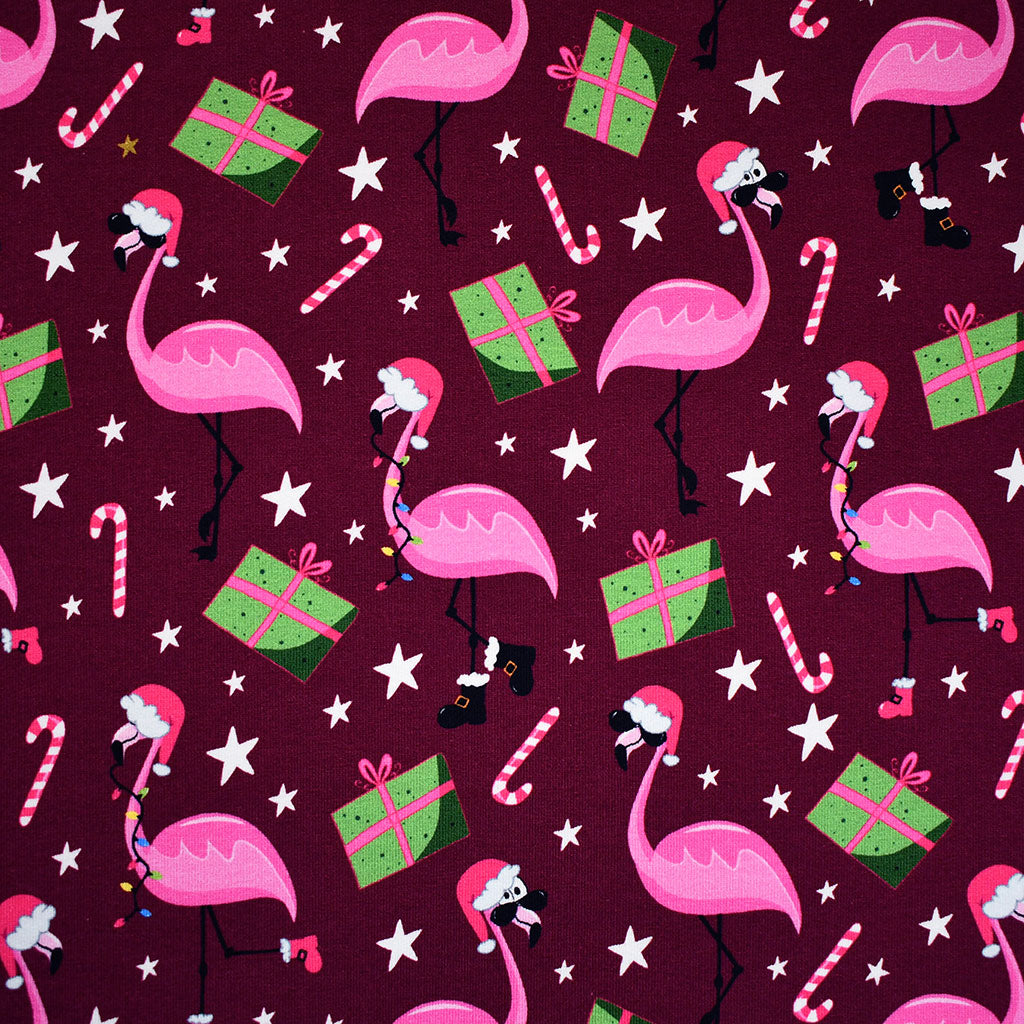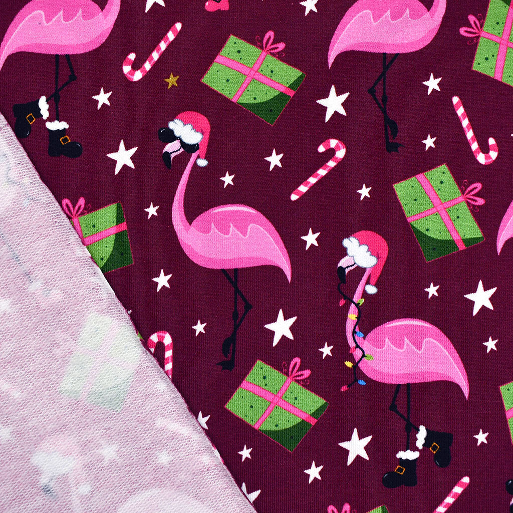Cozy Christmas Flamingos Sweatshirt Fleece Burgundy