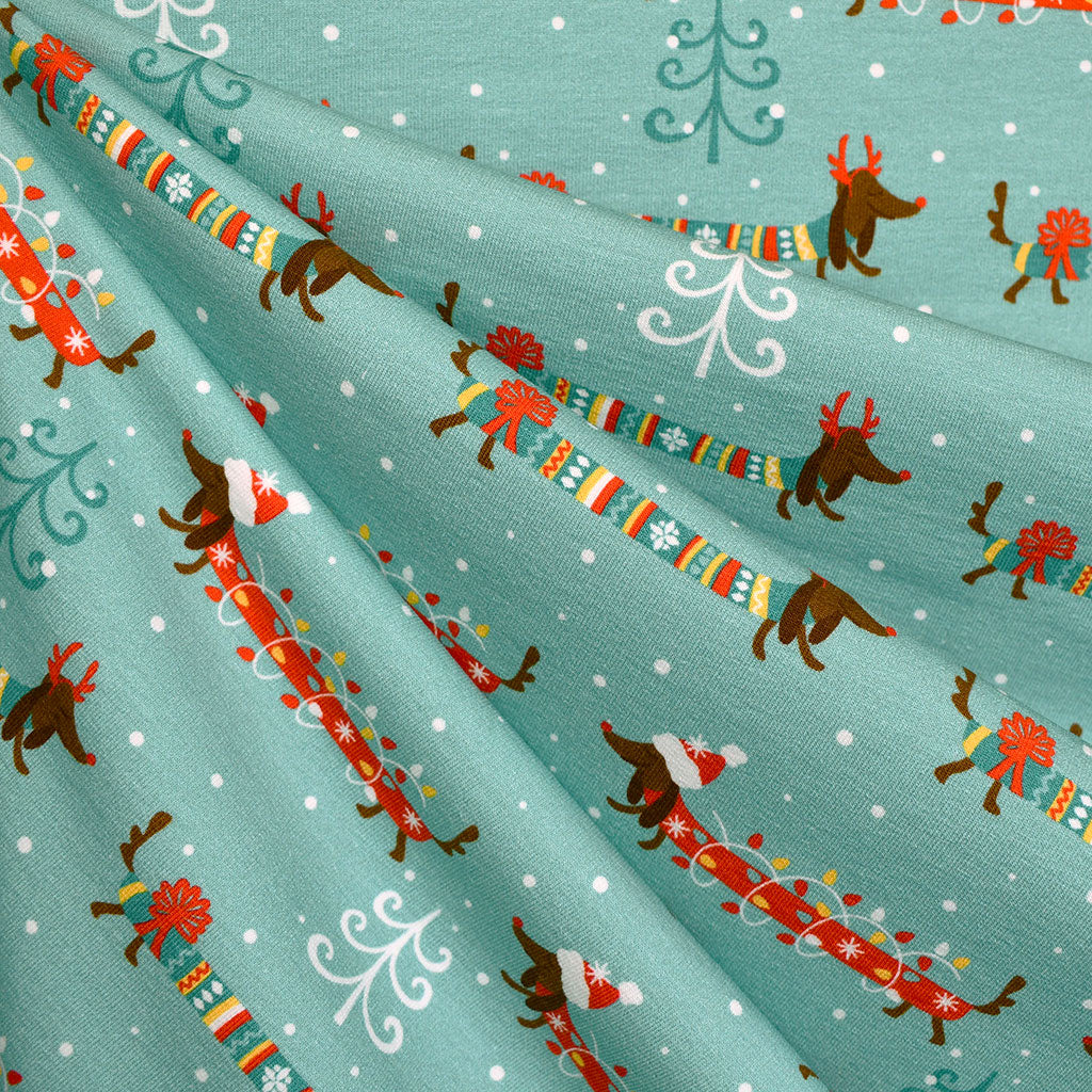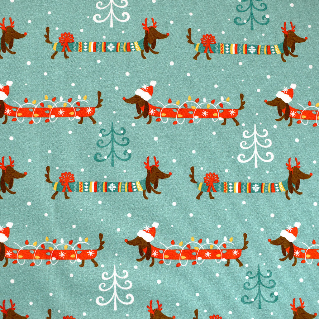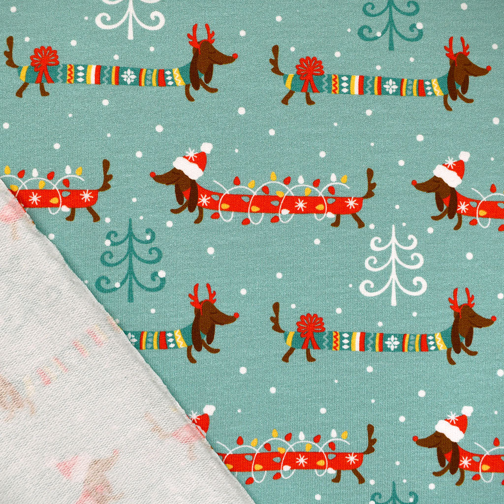 Cozy Christmas Sausage Dogs Sweatshirt Fleece Aqua