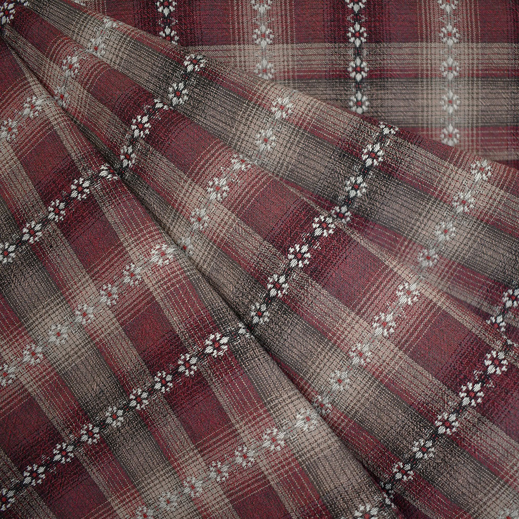Scale: Plaid repeat = 3-1/4" x 2-7/8", Daisies measure 3/8" wide.