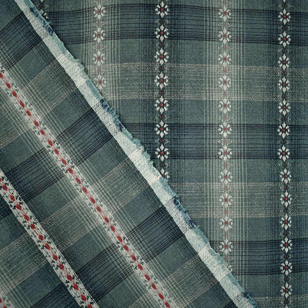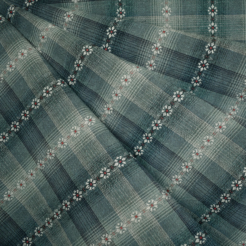 Scale: Plaid repeat = 3-1/4" x 2-7/8", Daisies measure 3/8" wide.