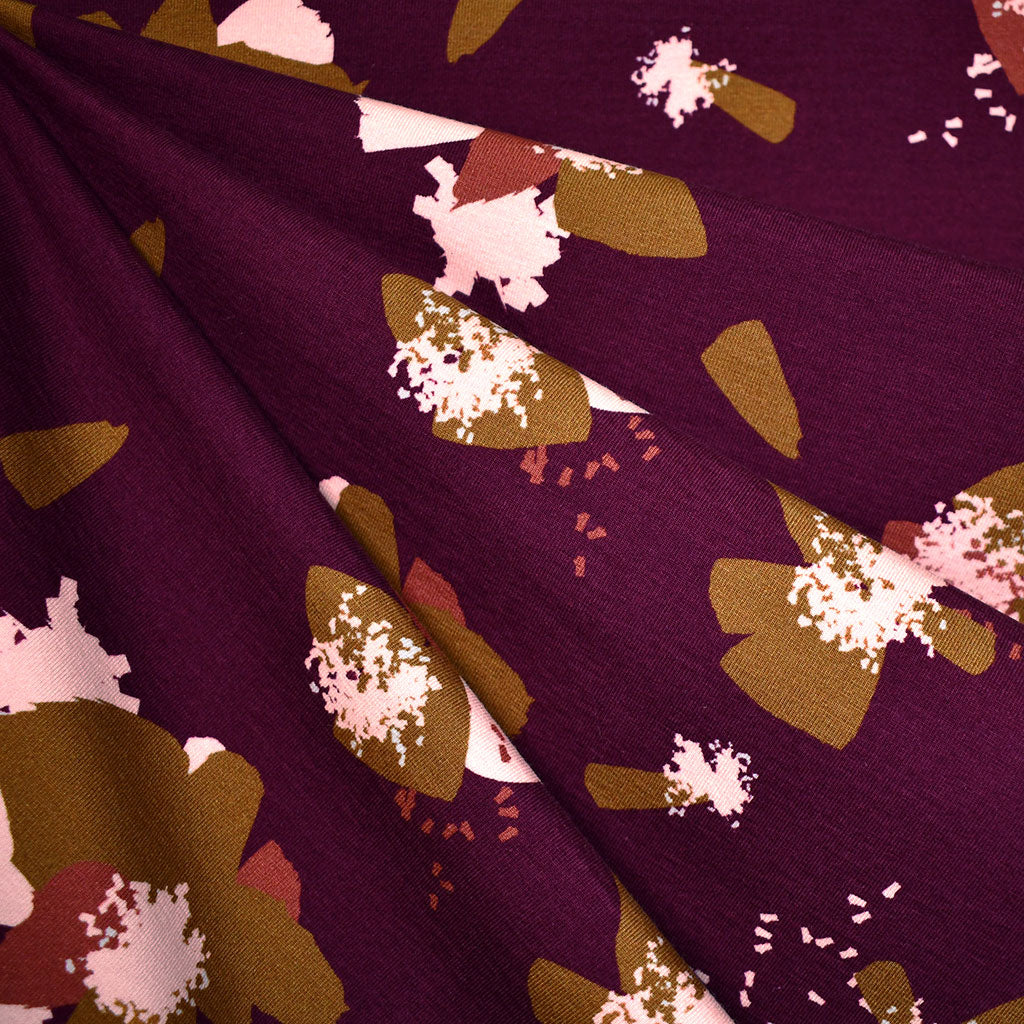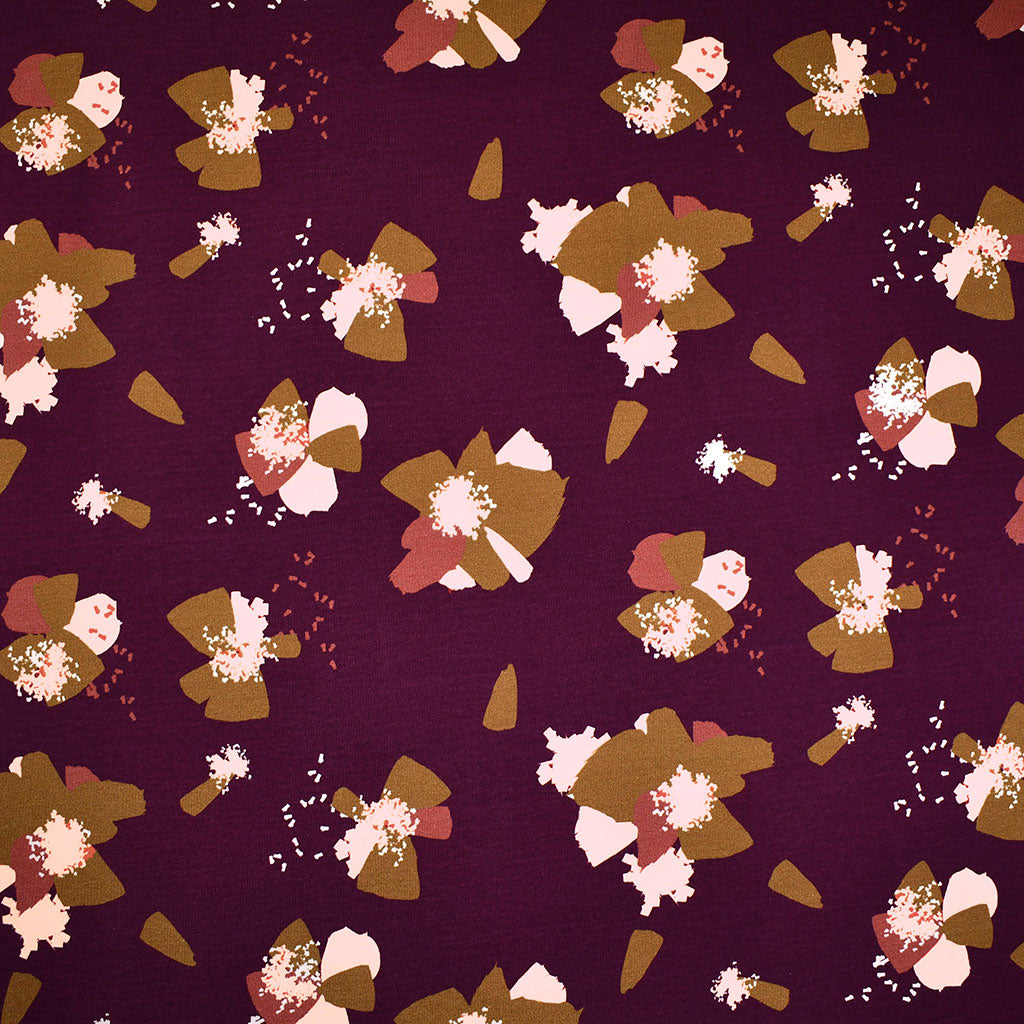 Églantine & Zoé Anémona Floral Cotton Jersey Knit Blackberry
