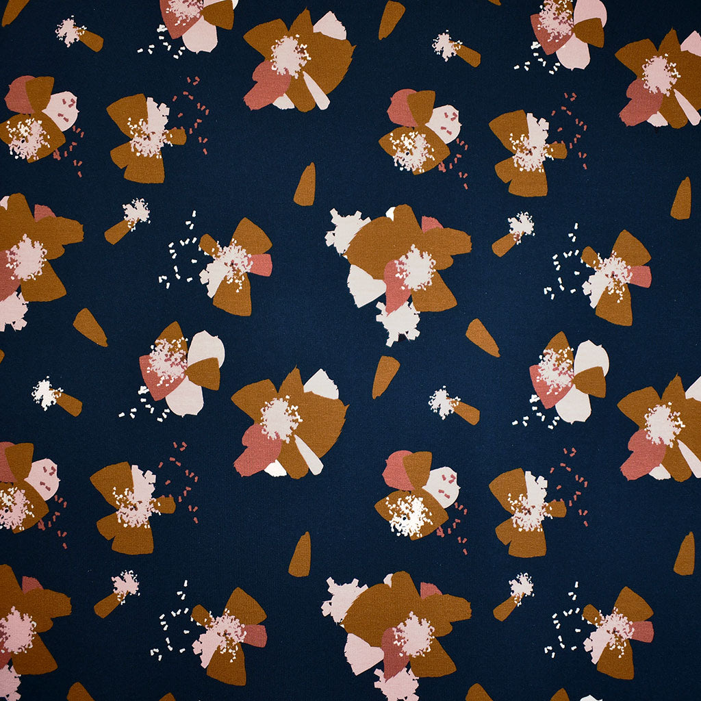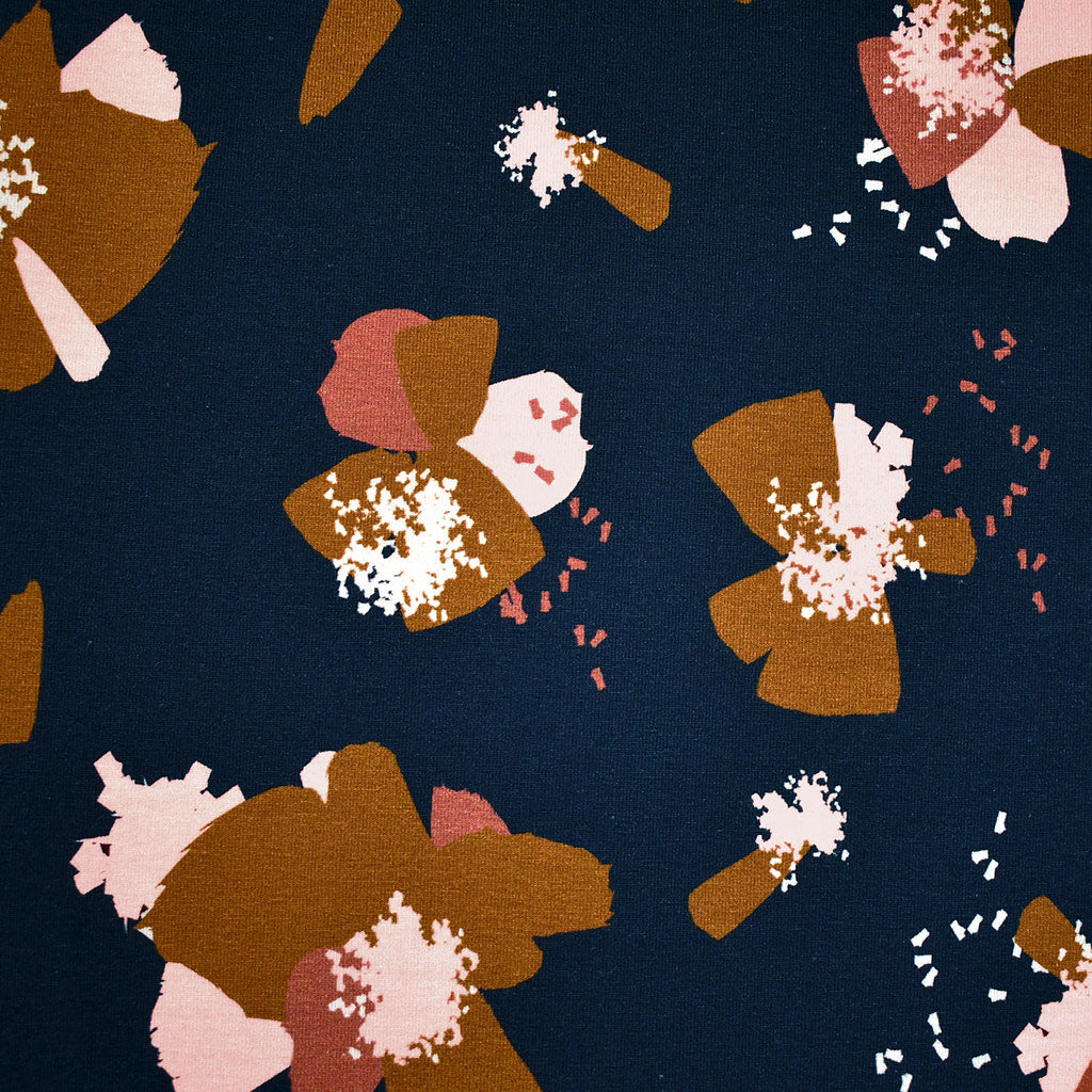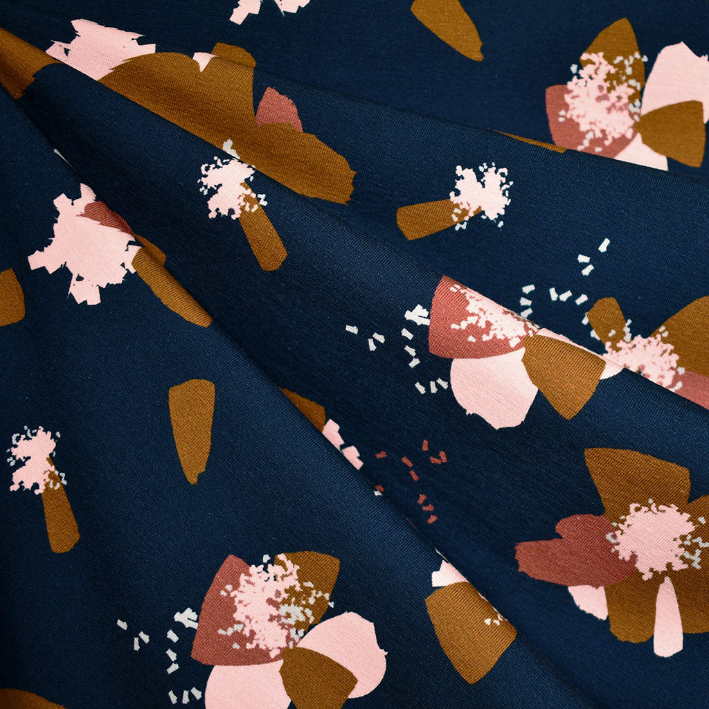 Églantine & Zoé Anémona Floral Cotton Jersey Knit Ink Blue