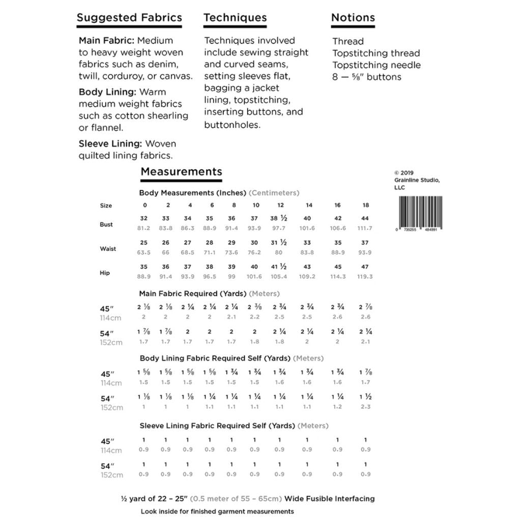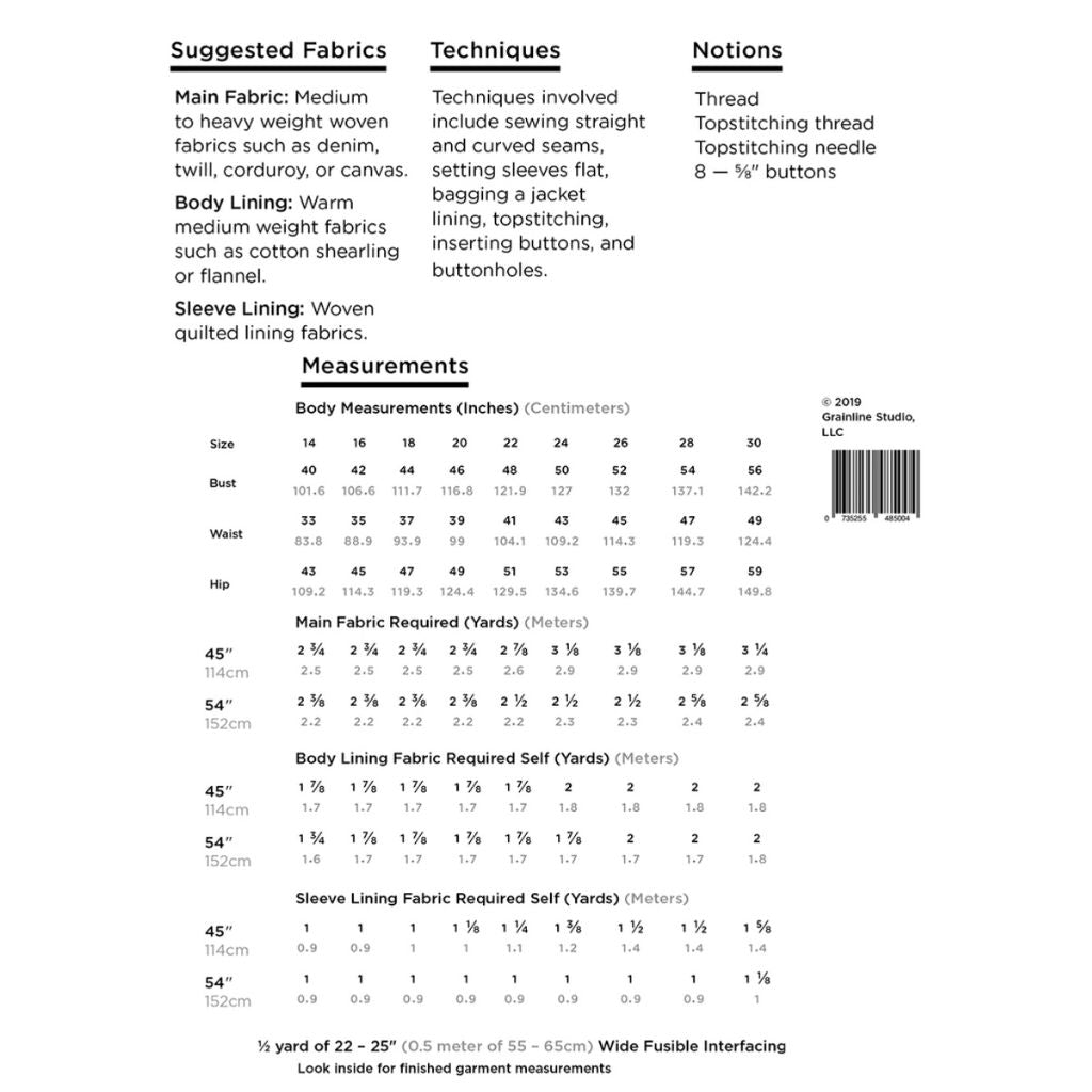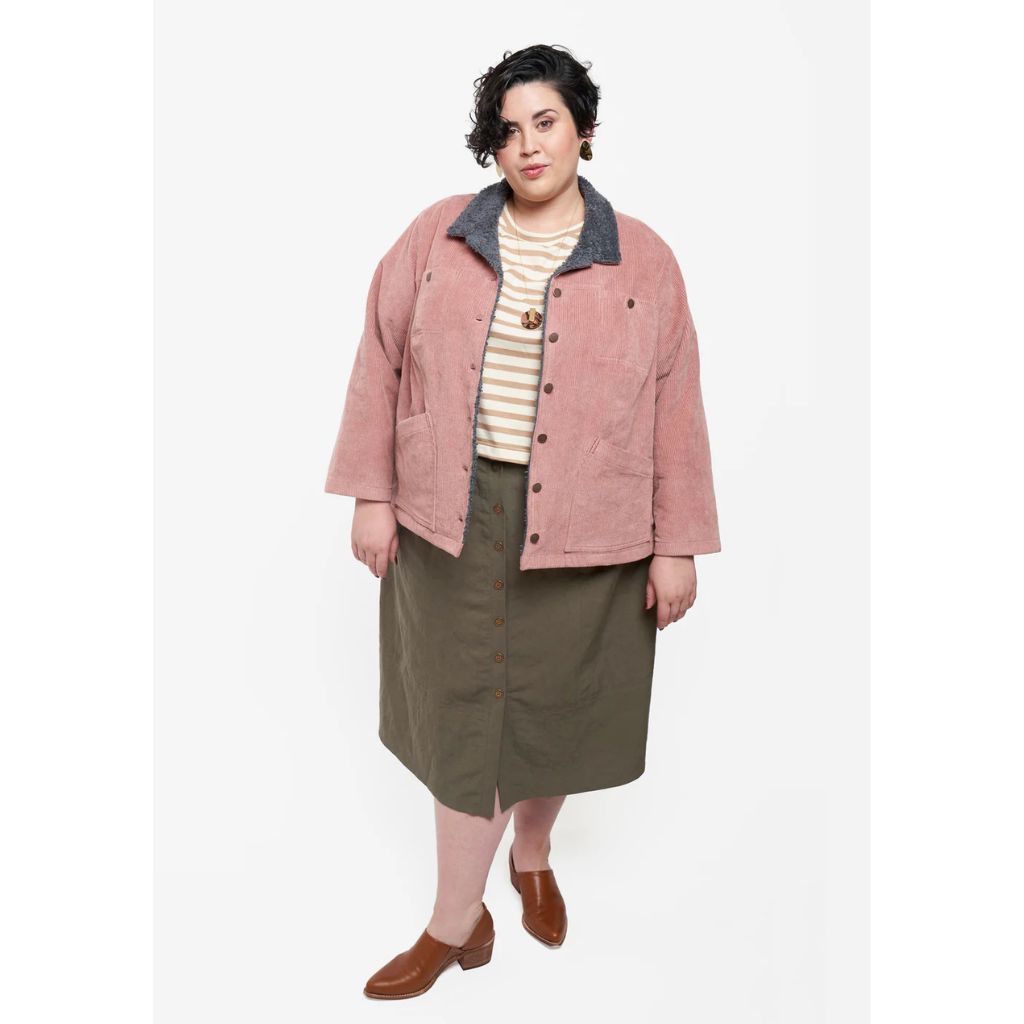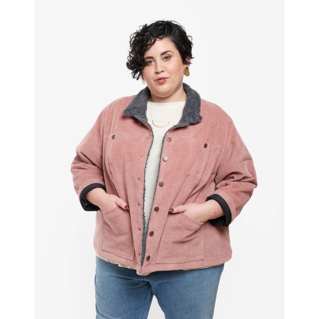 Body: Medium to heavy weight wovens, such as linen, canvas, denim, twill, or corduroy and coatings. For an oversize shirt version, try a heavier shirting or cozy flannel!