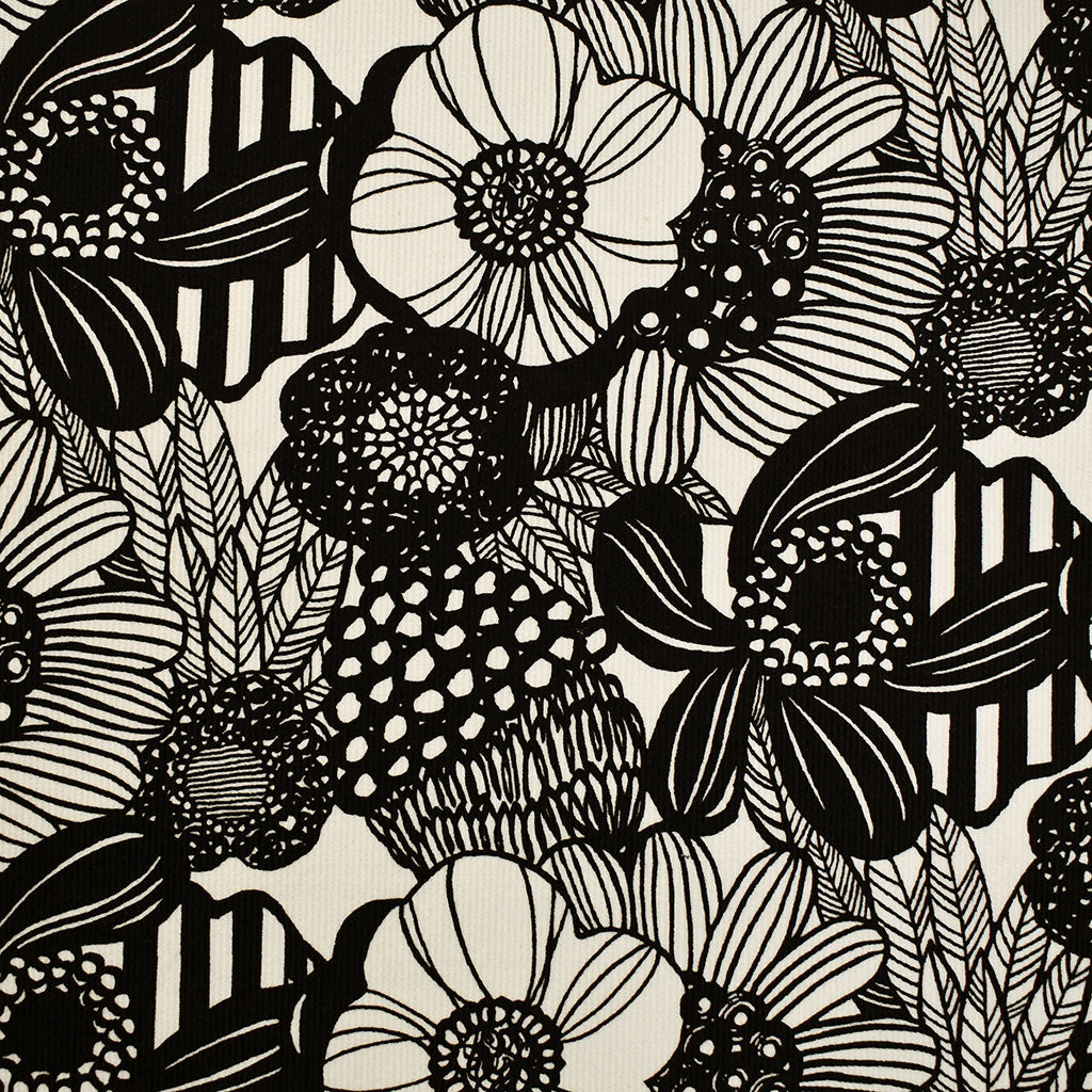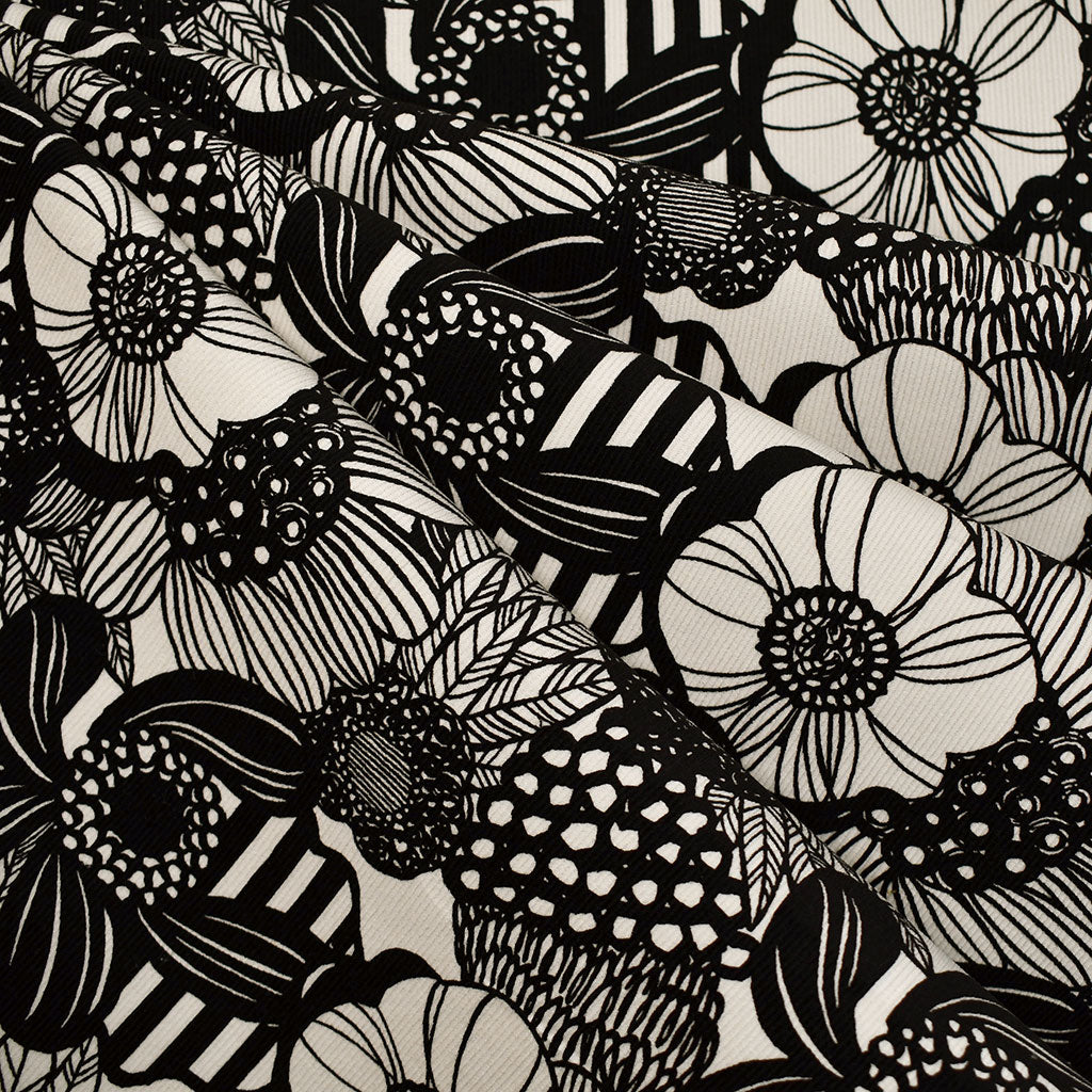 Japanese Scandi Graphic Floral Corduroy Shirting Black/Cream
