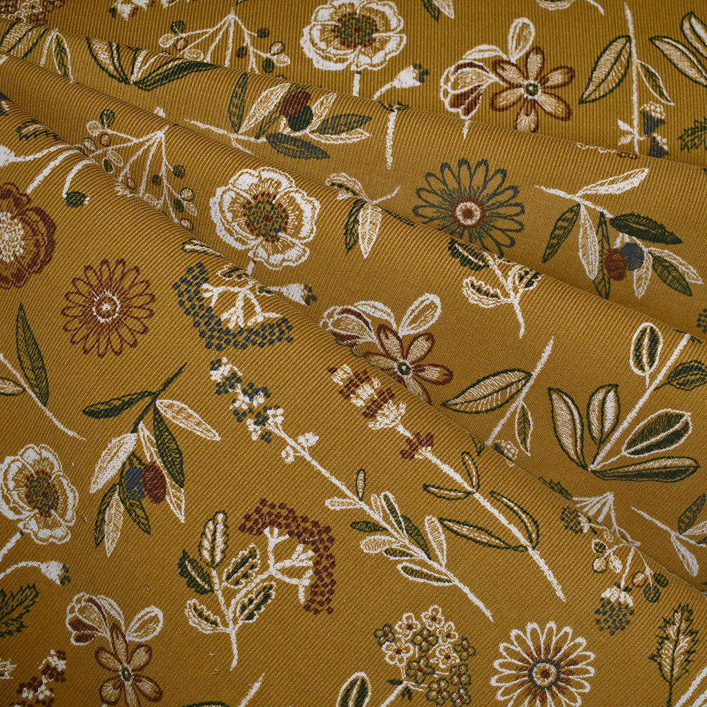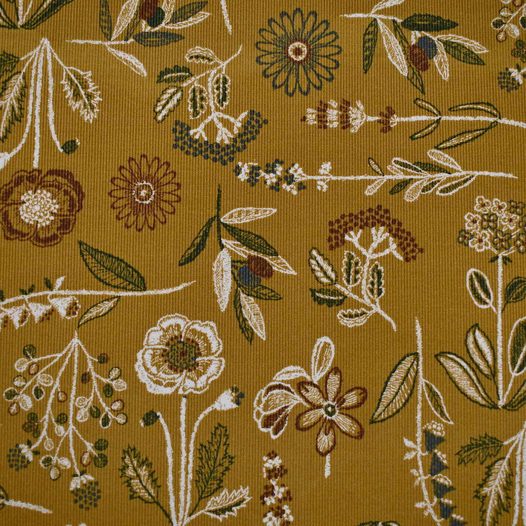 Japanese Sketchy Botanical Floral Corduroy Shirting Mustard