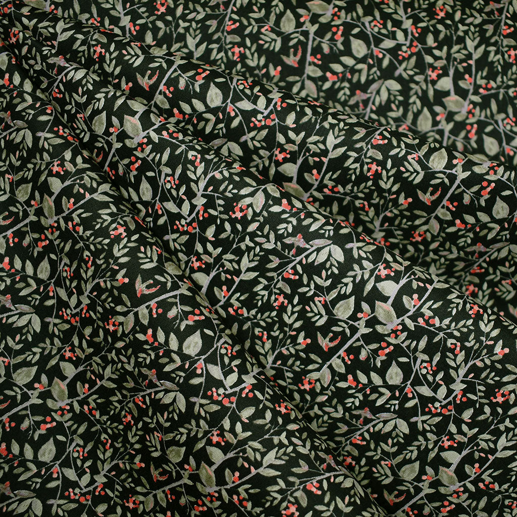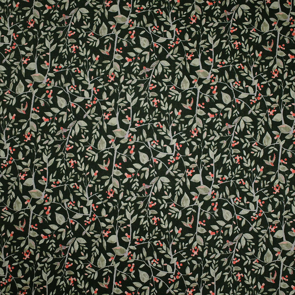 Japanese Tiny Leaf Stems Cotton Lawn Black/Olive