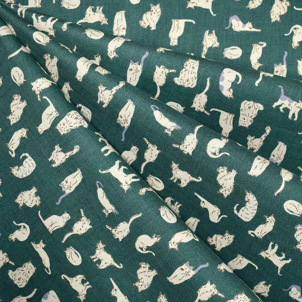 Japanese Tiny Prowling Cats Fine Twill Shirting Jade
