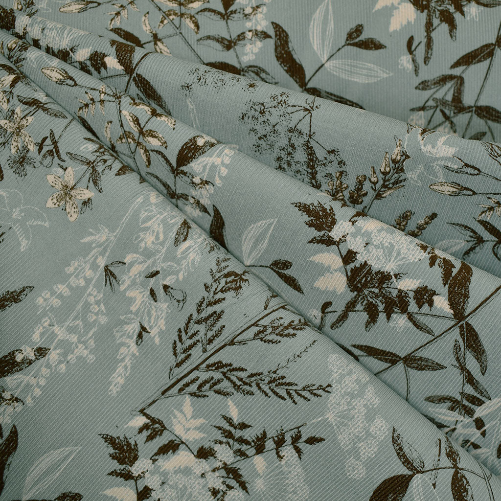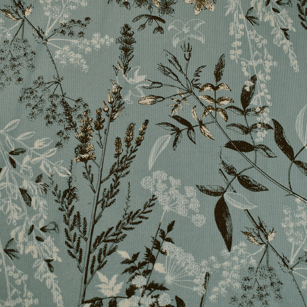 Japanese Wildflower Stems Corduroy Shirting Sea Glass/Espresso
