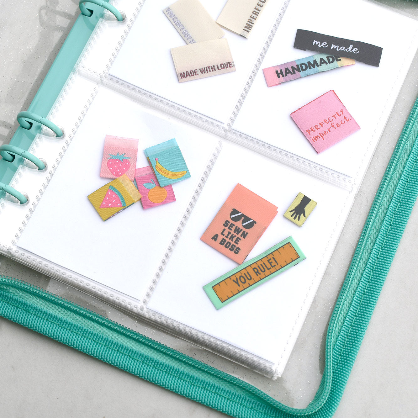 We finally found the perfect solution, a zippered book loaded with pockets to contain AND organize all of your labels. Kind of like a photo or sticker book but for your labels. Genius, right?! Now you will always know what labels you have and can quickly find the one you need.