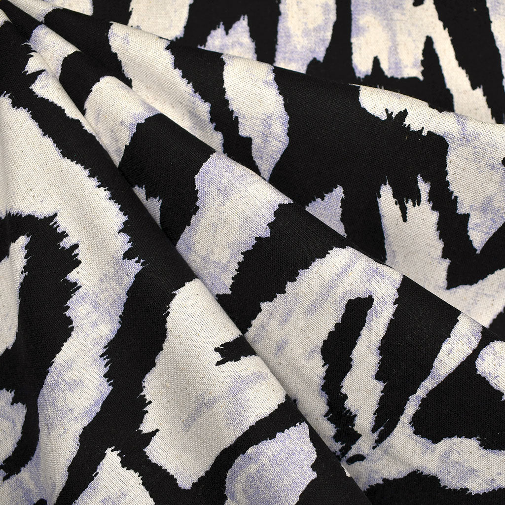 Large Scale Animal Spots Slub Texture Linen Blend Black/Periwinkle