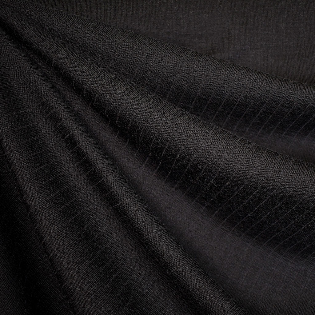 Mid Weight Merino Silk Blend Ribbed Jersey Knit Black