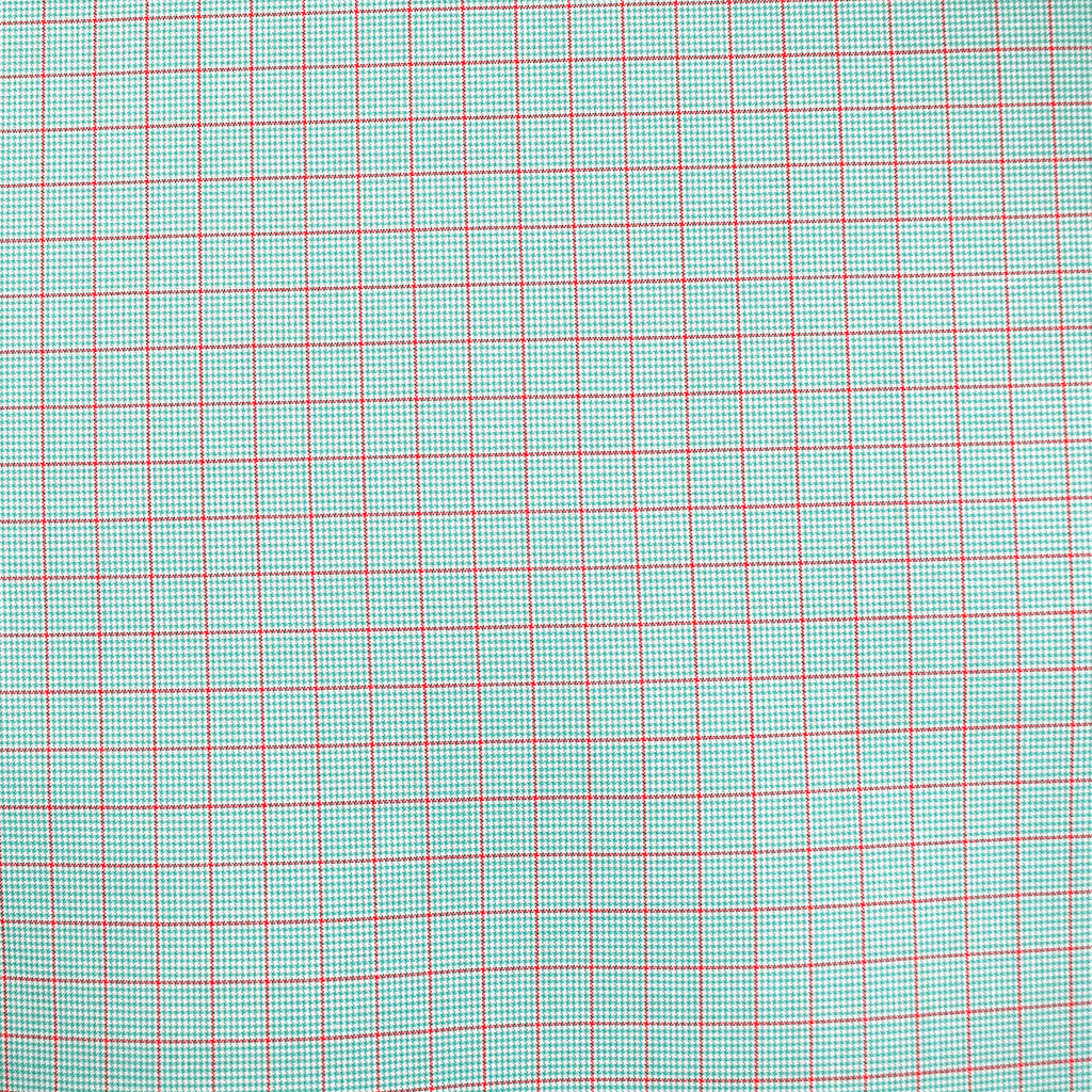 Micro Houndstooth Grid Fine Cotton Shirting Jade/Coral