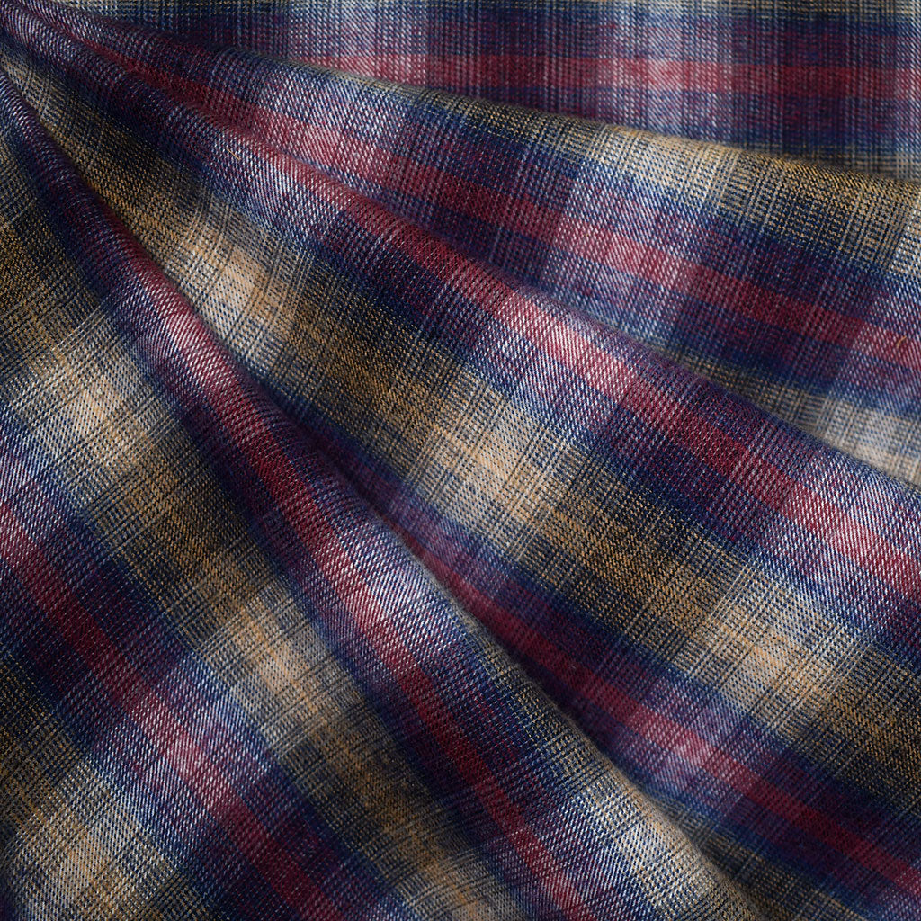 Ombre Plaid Cotton Flannel Shirting Wine/Navy