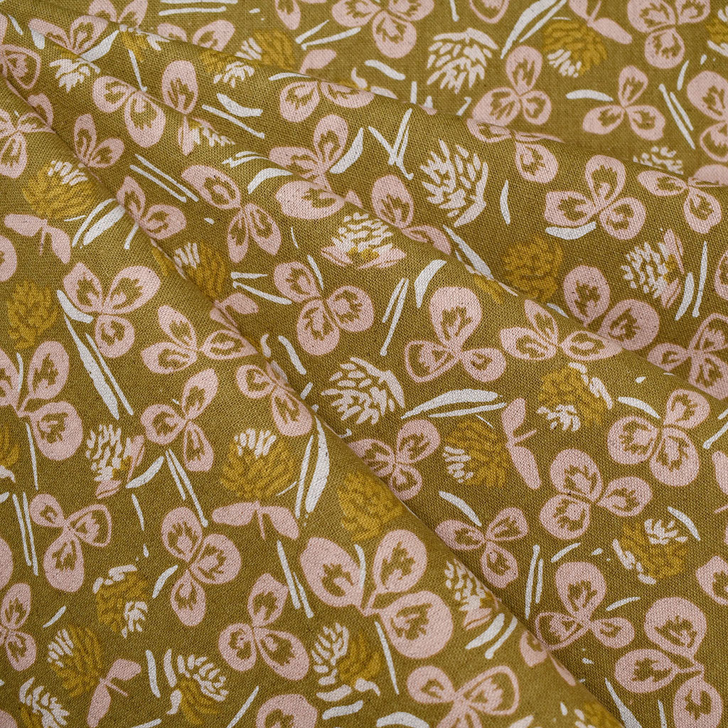 Orchard Run Clover Floral Cotton Flax Canvas Dijon
