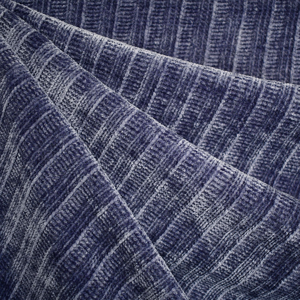 Plush Stripe Textured Velour Sweater Knit Denim Blue
