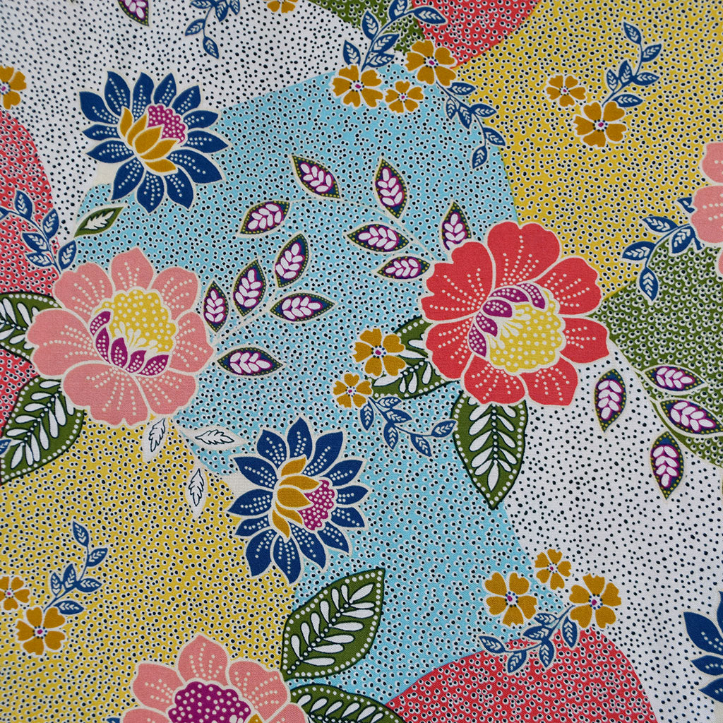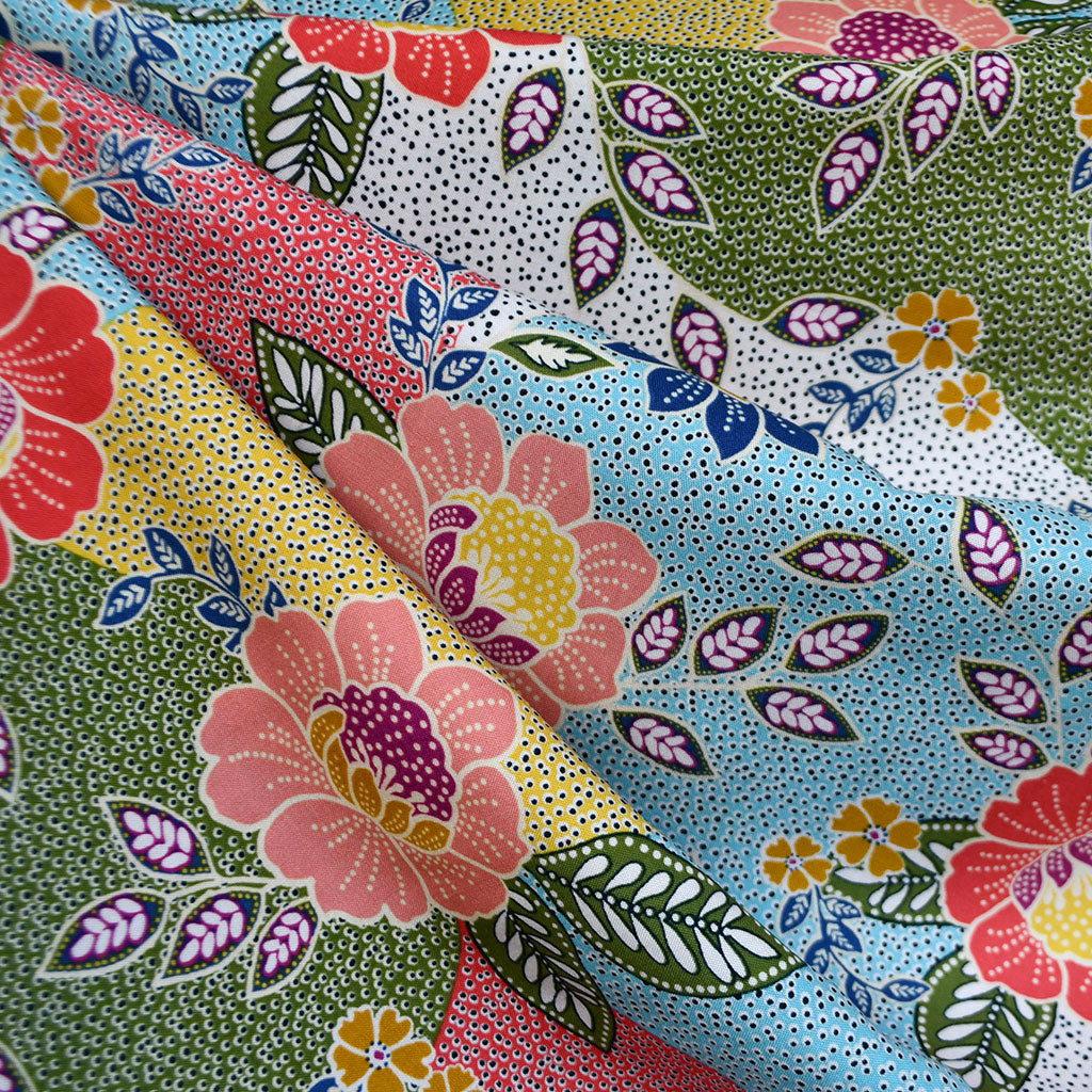 Print Mix Spring Floral Rayon Challis Coral/Aqua SY