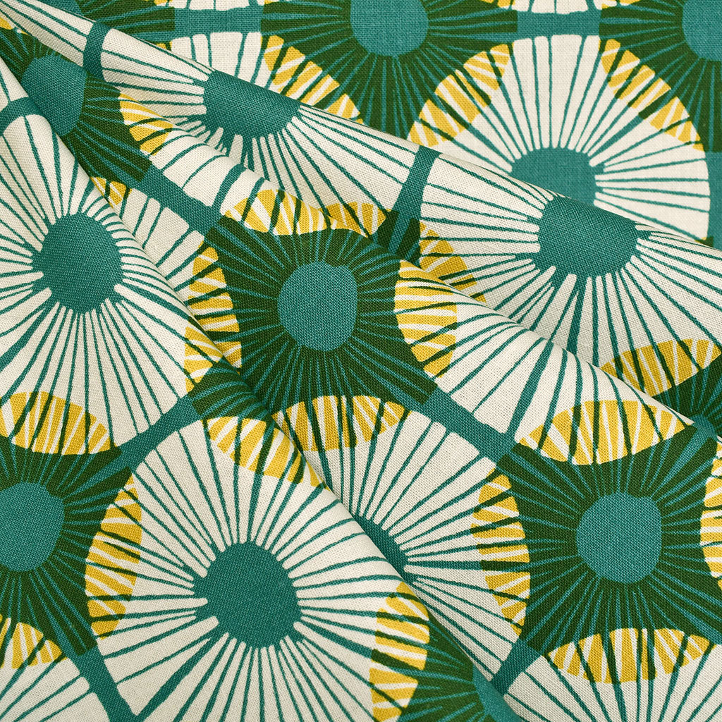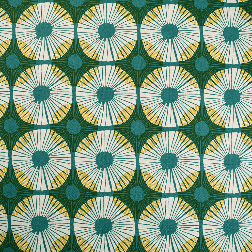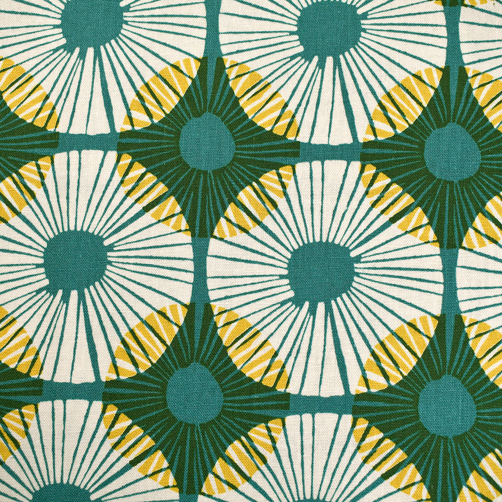 Scale: Circular burst shapes measure roughly 3-1/2" across. Full repeat = 4" (length)
