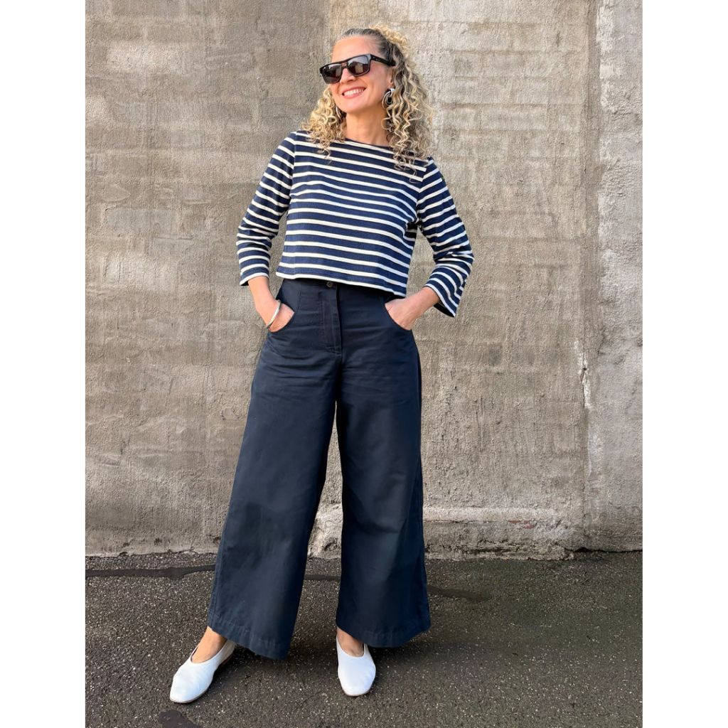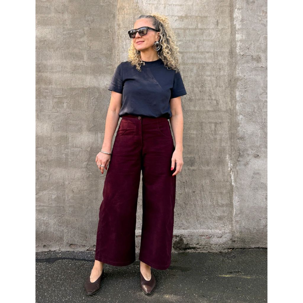 Recommended Fabrics: Light to medium weight non-stretch and minimal stretch bottom weights, denim, twill, corduroy, linen, or suitings.