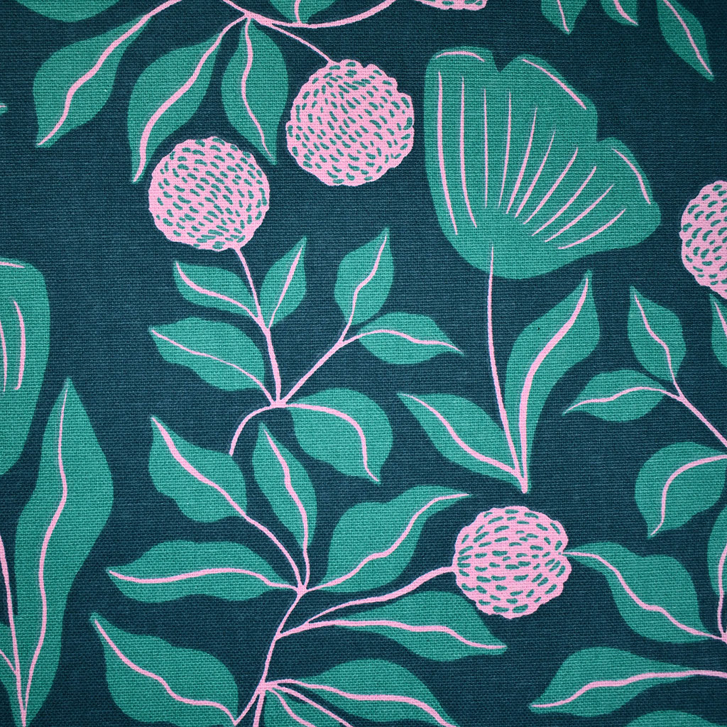 Tonal Garden Floral Cotton Canvas Teal/Pink