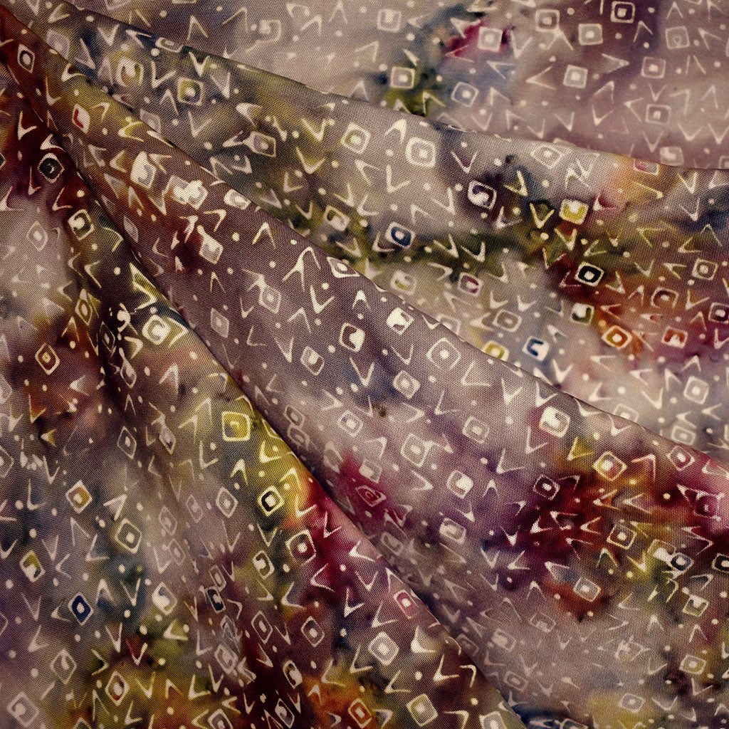 Tossed Geometric Shapes Exclusive Rayon Batik Taupe/Multi